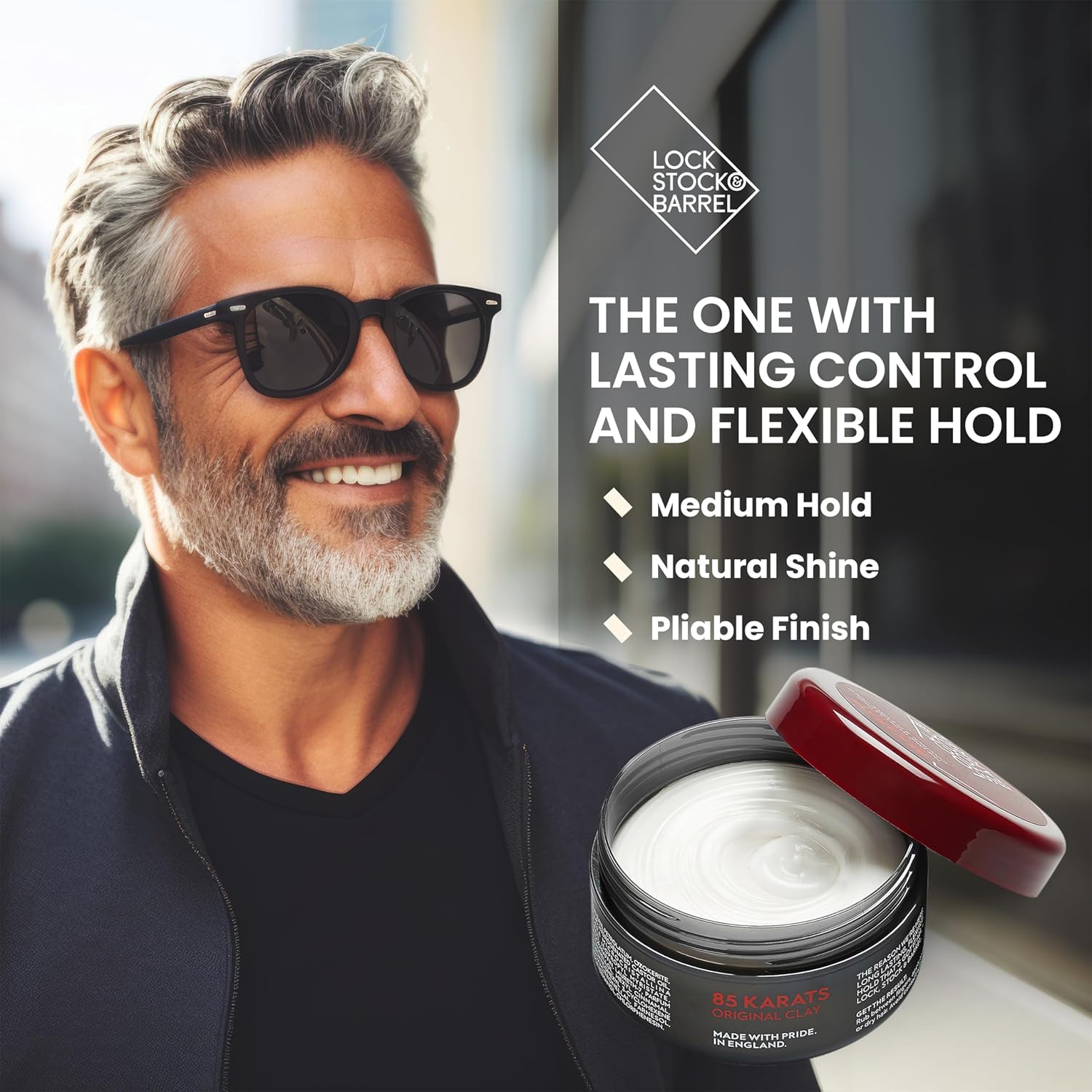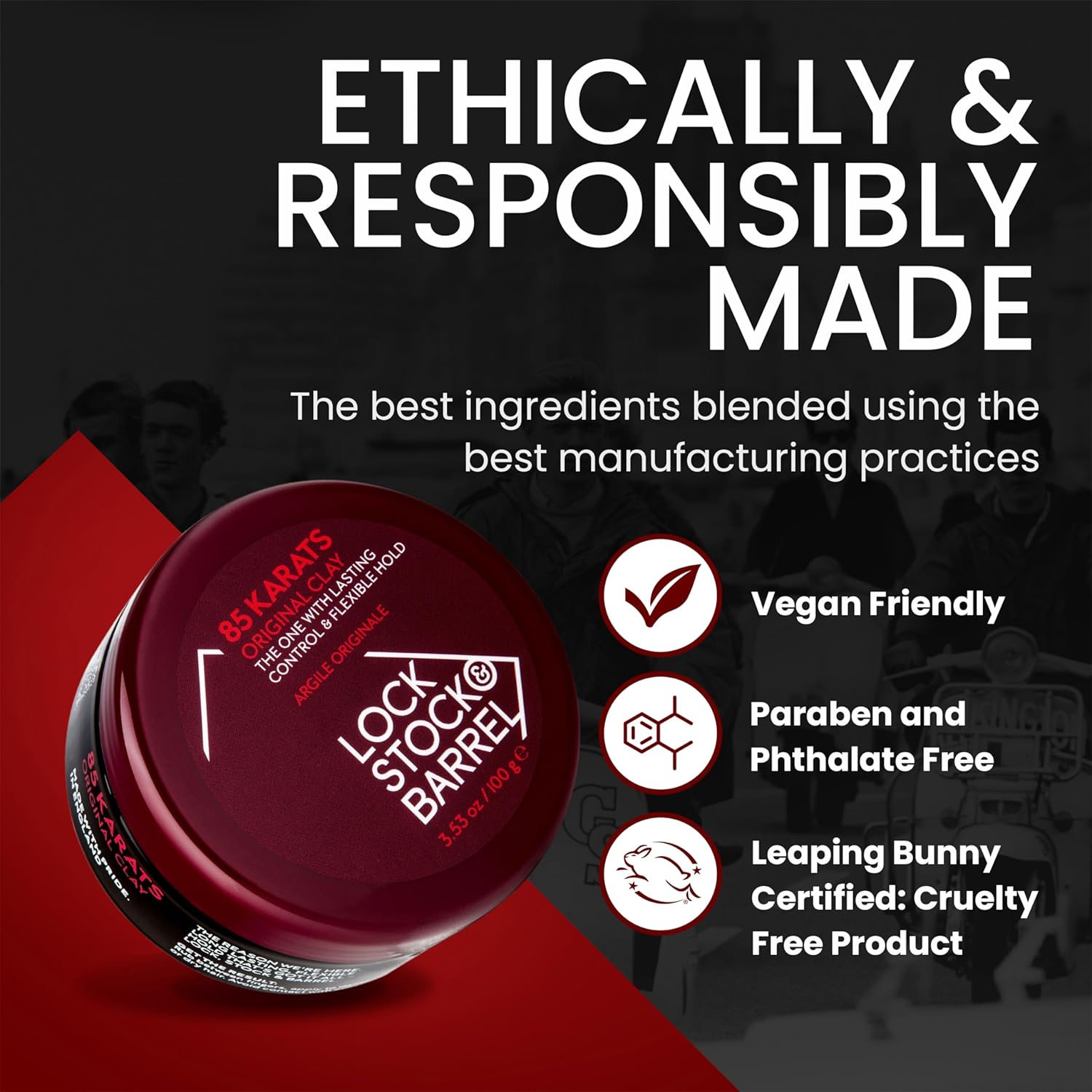 - 85 Karats Original Clay is part of Lock Stock & Barrel’s range of 6 powerful styling tools for men. An unrivalled collection of award-winning blends designed to give endless styling options.