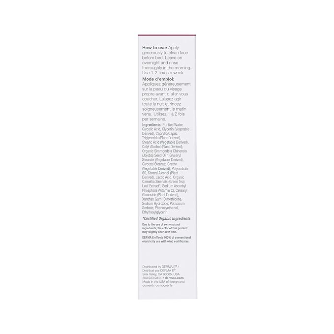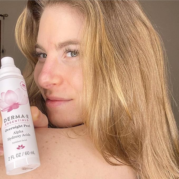 DERMA E Essentials Overnight Peel – Vegan, Gluten-Free Nourishing Facial Exfoliant with Alpha Hydroxy Acid and Lactic Acid, 2 fl oz