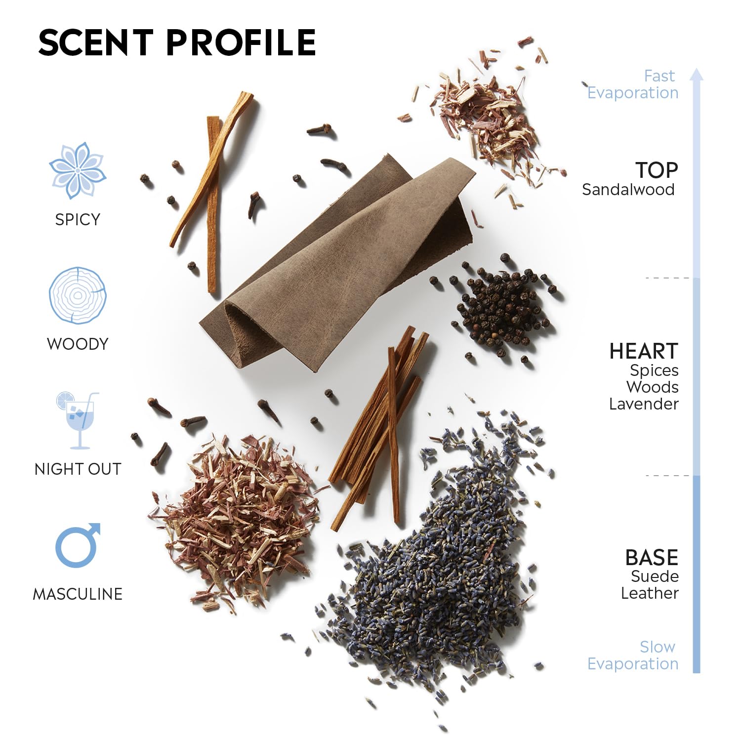 - Top Notes: The top notes boast of sandalwood, the heart notes feature spices, woods and lavender
