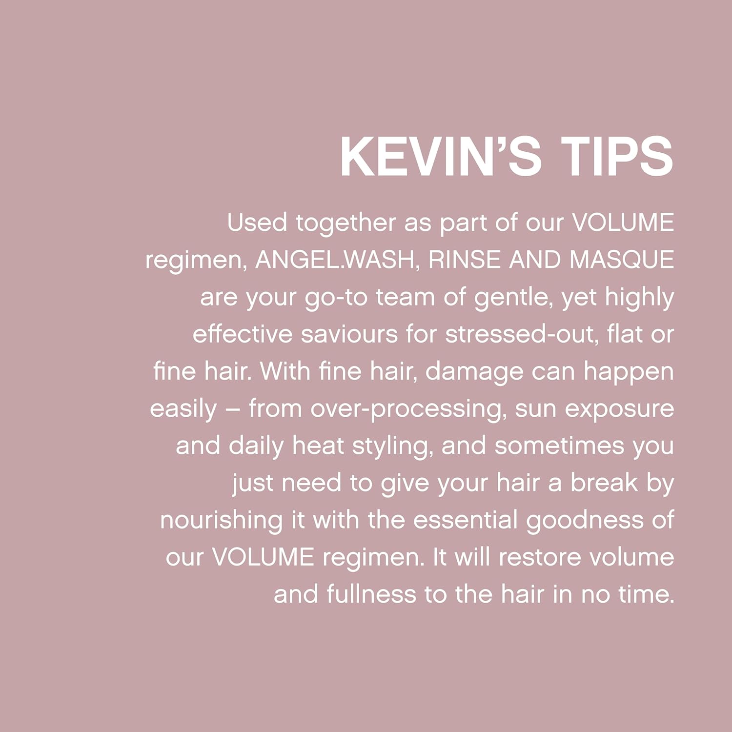- About KEVIN.MURPHY: KEVIN.MURPHY products provide the tools to recreate high-fashion runway looks in the salon or at-home, while always remaining kind to the environment