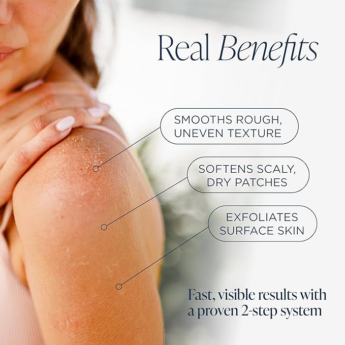 - COMPLETE 2-STEP ROUTINE TO SMOOTH KP: This full-body kit helps reduce keratosis pilaris with an exfoliating body wash, glycolic acid body lotion, & shower pouf. Cleanse, exfoliate, and hydrate dry, rough, or bumpy skin for a smoother texture.