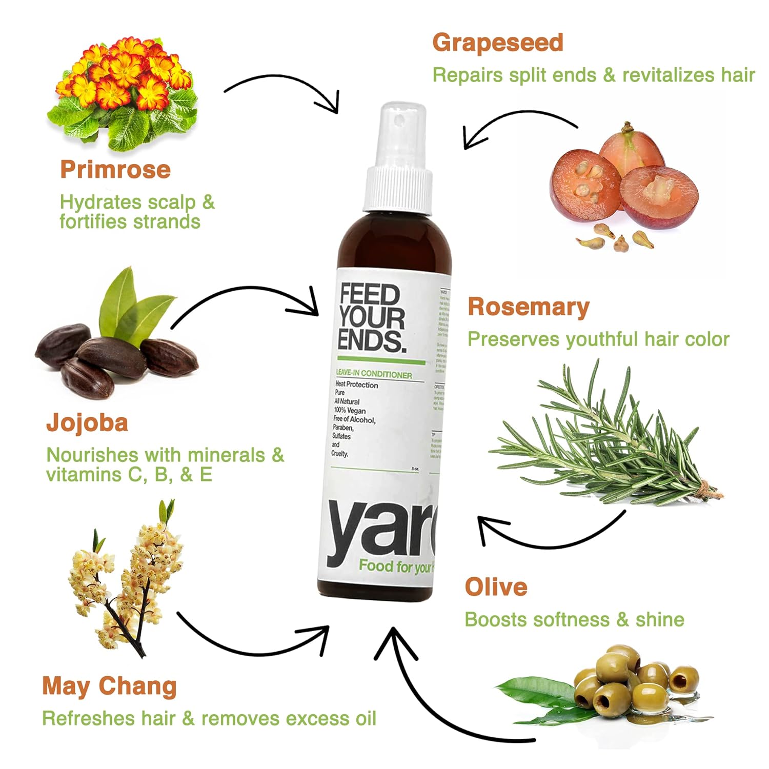 - NATURAL INGREDIENTS - Everything you’ll love, nothing you won’t. Yarok hair products are packed with nourishing ingredients like Jojoba Oil, Primrose and Rosemary. Our Feed Your Ends Leave In Conditioner is rich in vitamins and is formulated to help achieve smooth, tangle-free hair.