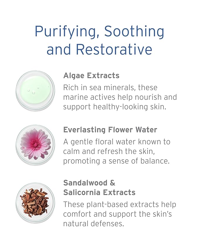- INGREDIENTS. Algae extracts are rich in protective properties that nourish and detoxify skin. Organic everlasting flower water calms, tones and purifies, while sandalwood and Salicornia extracts provide protective properties.