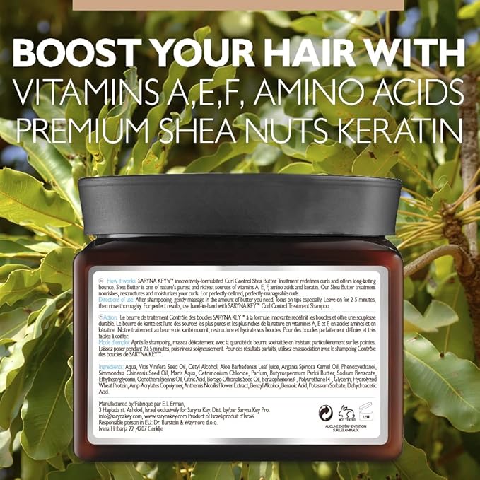 - Saryna Key's innovatively-formulated Curl Control Shea Butter Treatment redefines curls and offers long-lasting bounce. Shea Butter is one of nature’s purest and richest sources of vitamins A, E, F, amino acids and keratin.