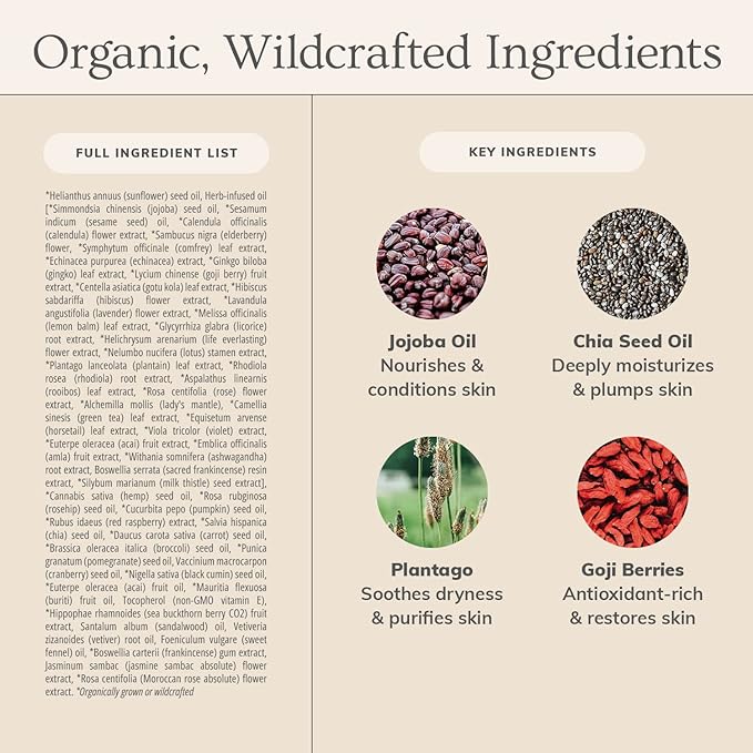 - ORGANIC & WILDCRAFTED - Our skin care products are naturally formulated, with organically grown and wildcrafted ingredients. We work with small farmers and innovative chemists to offer you the most potent, handcrafted botanical products available.