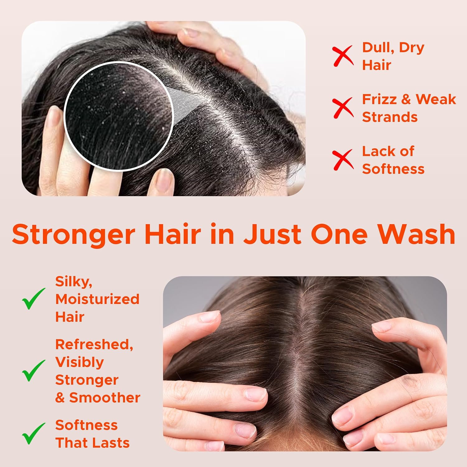- Strengthens & Restores Hair Health – Enriched with vitamins A & C and sesame seed oil, this hair strengthening conditioner helps repair split ends, strengthen weak strands, and improve elasticity for long-term resilience.