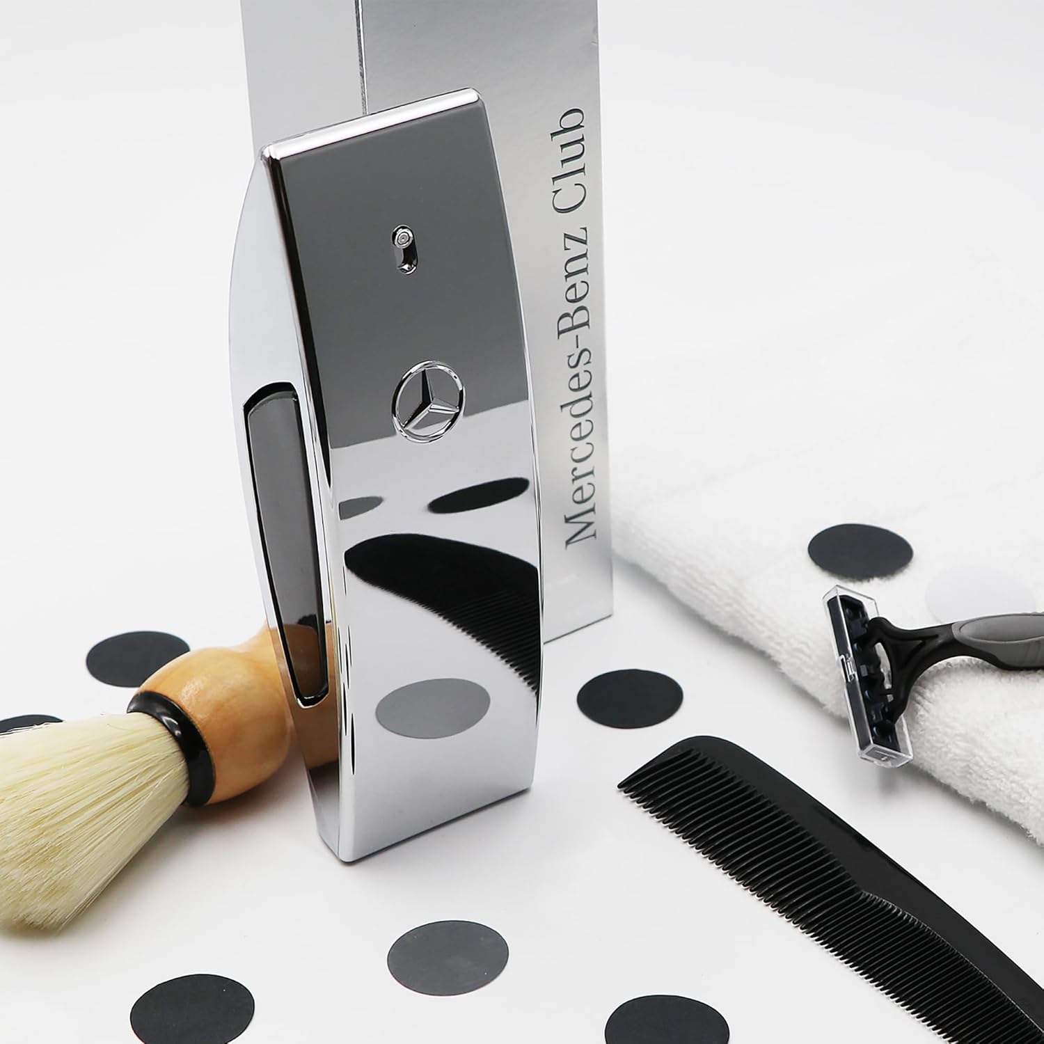 - UNIQUE HANDCRAFTED BOTTLE DESIGN. Mercedes-Benz Club For Men is encapsulated in a streamlined and futuristic bottle design, emblemized with the Brand’s iconic three-pronged star logo. A fresh-yet-classic design, just like the man who carries it.