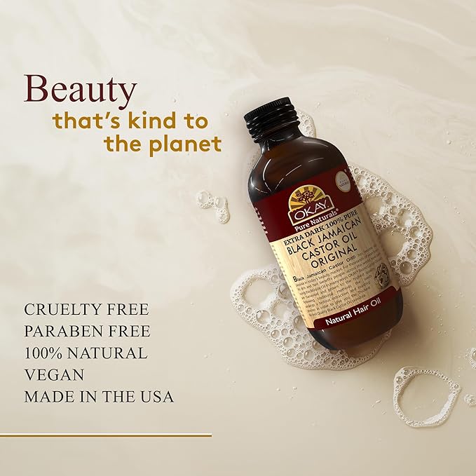 OKAY Pure Naturals Black Jamaican Castor Oil - Castor Oil for Hair Health, Moisture for Skin, Body, Scalp, Eyelashes, Eyebrows, for Men & Women - 4 oz (Pack of 1)