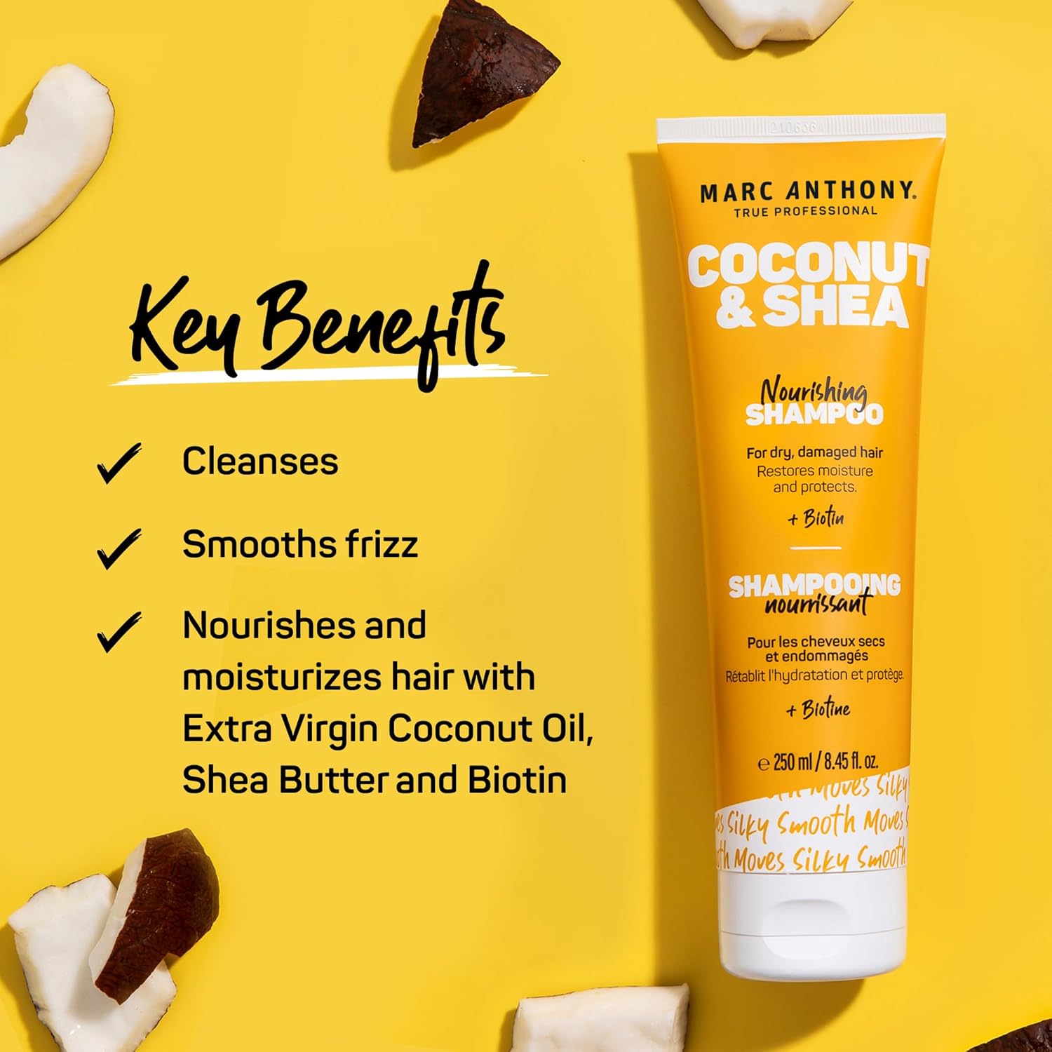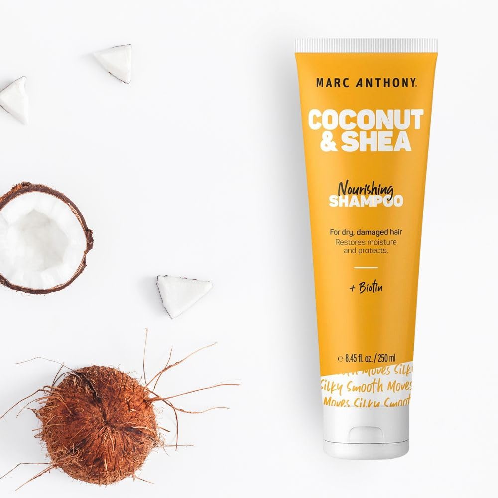 - Hydration You Can Feel: Marc Anthony's Coconut & Shea Collection promises nourishing products that leave your hair feeling hydrated, smooth, and healthy. With 100% Extra Virgin Coconut Oil, Shea Butter, and Biotin, you can reduce frizz and prevent essential moisture loss. Dry, damaged hair will feel restored with this ultra-moisturizing, Paraben-, Sulfate-, and Phthalate-free formula.