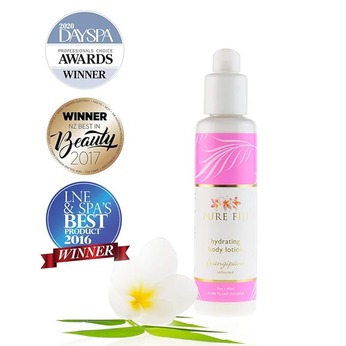 PURE FIJI Body Lotion Hydrating - Moisturizing Lotion for Dry Skin with Coconut Milk and Vitamin E, Organic Body Lotion For Women and Men, Frangipani Scent, 3 oz