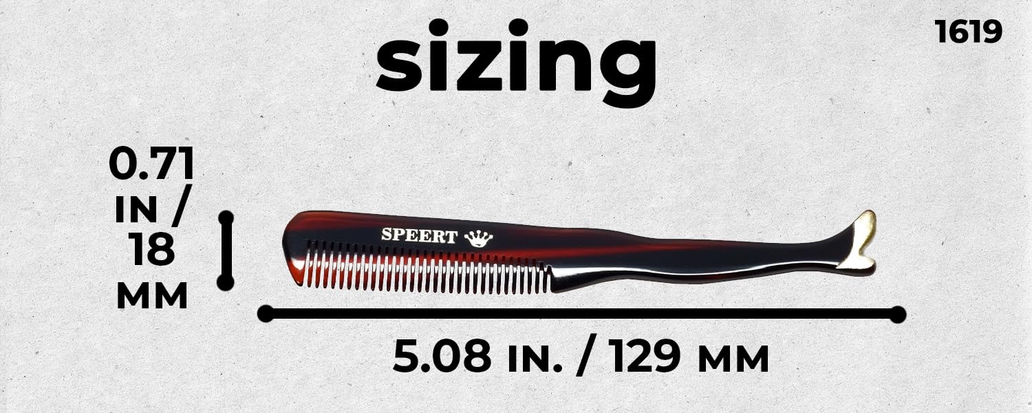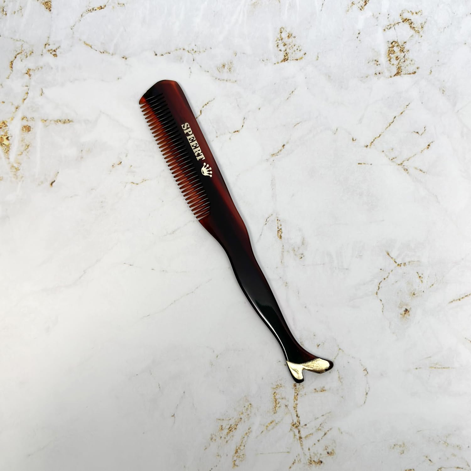 - Swiss Craftsmanship: Handcrafted in Switzerland, our Speert European comb is a masterpiece of design and functionality, constructed from premium cellulose acetate for unparalleled durability and flexibility. This carefully selected material ensures a smooth, seamless glide through all types of facial hair, providing a grooming experience free from static or snags. This comb respects the skin and scalp, promoting a healthy grooming routine. Measures: 5.08" x 0.71" x 0.1" (129 x 18 x 2.5 MM)