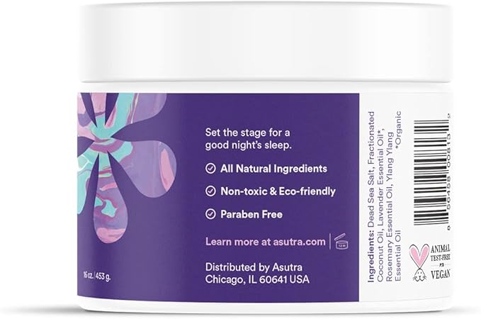 ASUTRA Dead Sea Bath Salts (Bedtime Soak), 16 oz - Soak in Rich & Vital Healing Minerals - Prepare for Sweet Dreams with Lavendar, Rosemary, & Ylang Ylang Essential Oils