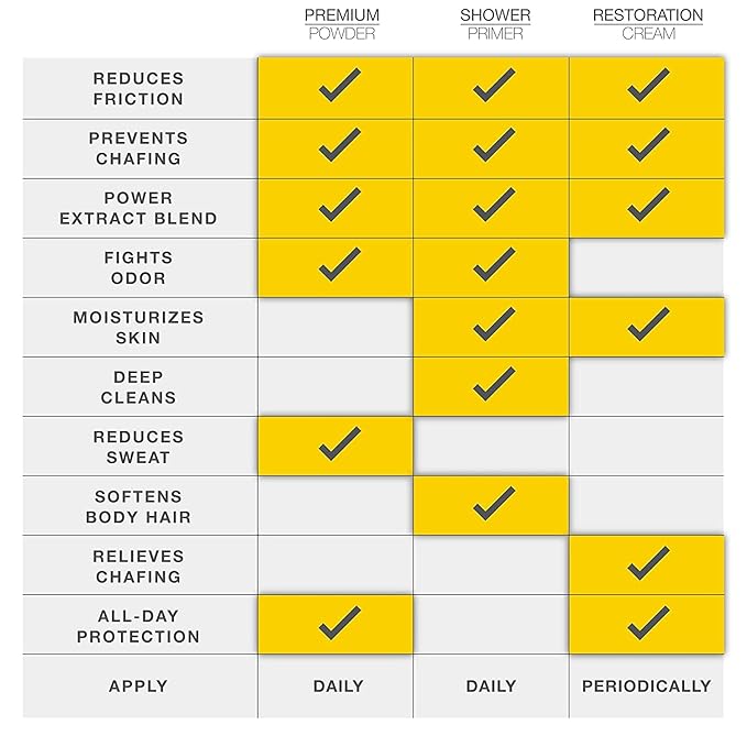 - ELIMINATES ODOR: Say goodbye to “stank.” Our shower primer banishes sweat smell from your most sensitive areas while keeping odor at bay. Wash with Chassis Shower Primer first, then sprinkle on Chassis Premium Powder for all-day odor elimination.