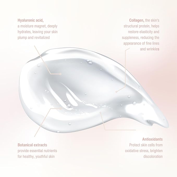 - PREMIUM INGREDIENTS: This non-greasy formula penetrates deeply with a potent blend of active ingredients, including collagen, hyaluronic acid, and botanical extracts, deeply hydrating your skin while protecting it from environmental stressors.