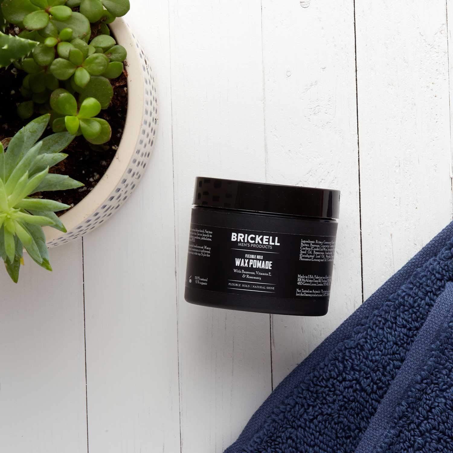 Brickell Men's Products Flexible Hold Wax Pomade for Men, Natural and Organic Irritation Free Natural Shine Hair Styling Product, 2 Ounce, Scented