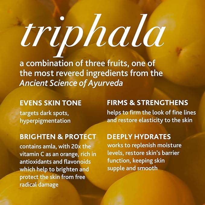 - THE AYURVEDIC ELIXIR FOR YOUR UNDER-EYES. The combination of Triphala for fine lines, Neem for circles and puffiness and Honey to soothe and repair - is like a Power Smoothie for the Eyes.