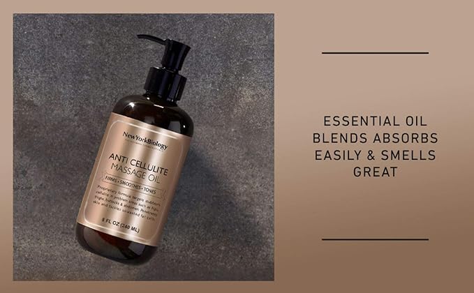 New York Biology Anti Cellulite Massage Oil 8 Fl. oz – Made with 100% Natural Oils – Body Oil for Massage Therapy, Muscle Relaxation and Deep Tissue