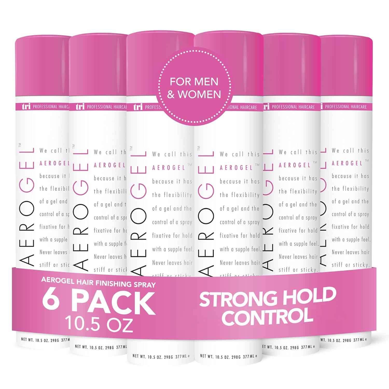 TRI Design Aerogel Hairspray - Strong Hold Hair Finishing Spray for Volumizing & Control, Flexible Styling for All Hair Types, Non-Sticky and Scented - For Women and Men - Pack of 6 (10.5 Oz)