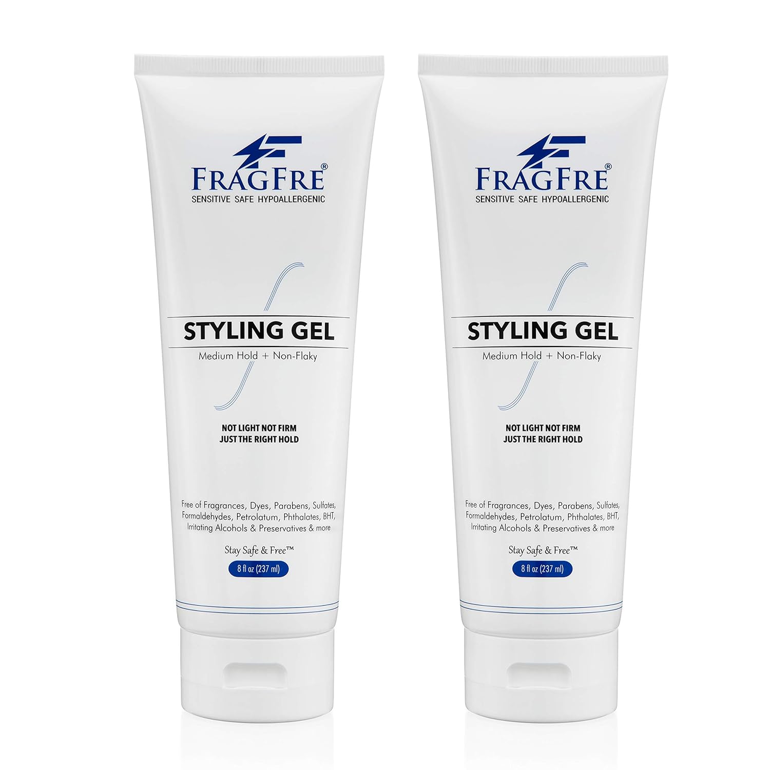 Hair Styling Gel 8 oz (2-Pack Gift Set) Medium Hold - Fragrance Free Hypoallergenic - Irritation Free Styling Gel for Sensitive Skin - for Men Women Children - Gluten Free Vegan Cruelty Free