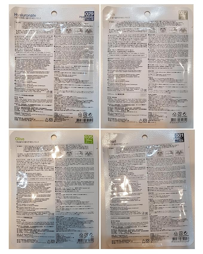 DERMAL 24 Combo Pack A Collagen Essence Korean Face Mask - Hydrating & Soothing Facial Mask with Panthenol - Hypoallergenic Self Care Sheet Mask for All Skin Types - Natural Home Spa Treatment Mask