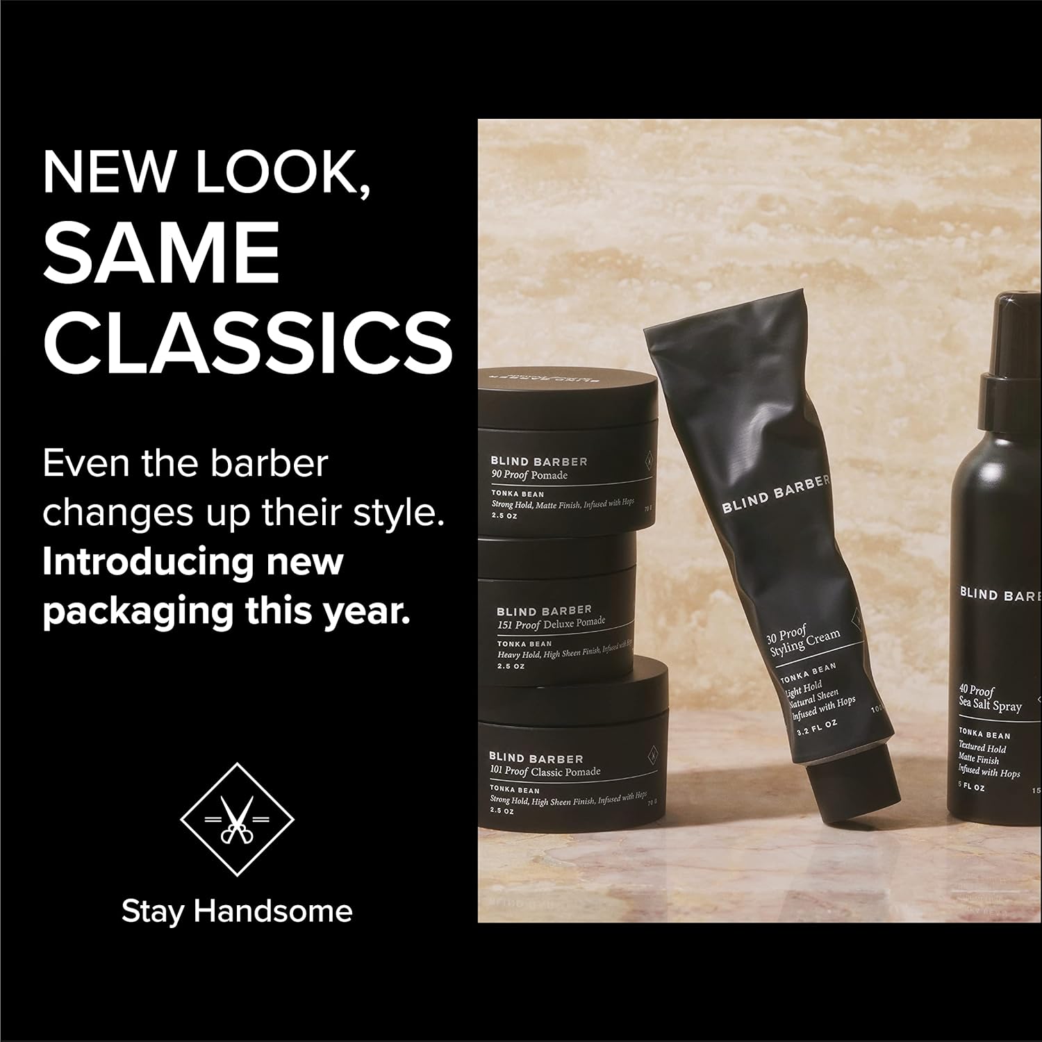 Blind Barber 30 Proof Hair Cream for Men - Styling Cream & Beard Tamer - Light Hold & Natural Shine - Paraben & Sulfate-Free, Water-Based Hair Products - Tonka Bean Scent (3.2 Fl oz)