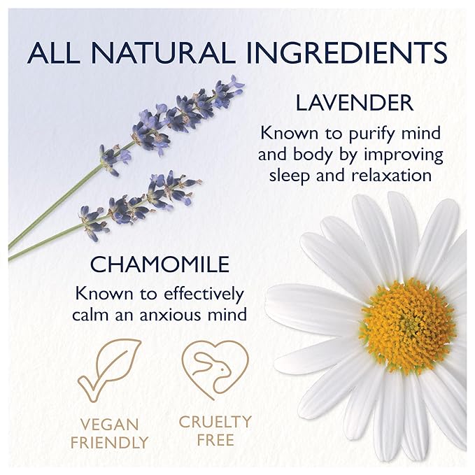 - Lavender and Chamomile Infused: Harness the calming and soothing properties of lavender and chamomile essential oils in every product, creating a serene atmosphere and promoting relaxation for a peaceful night's sleep