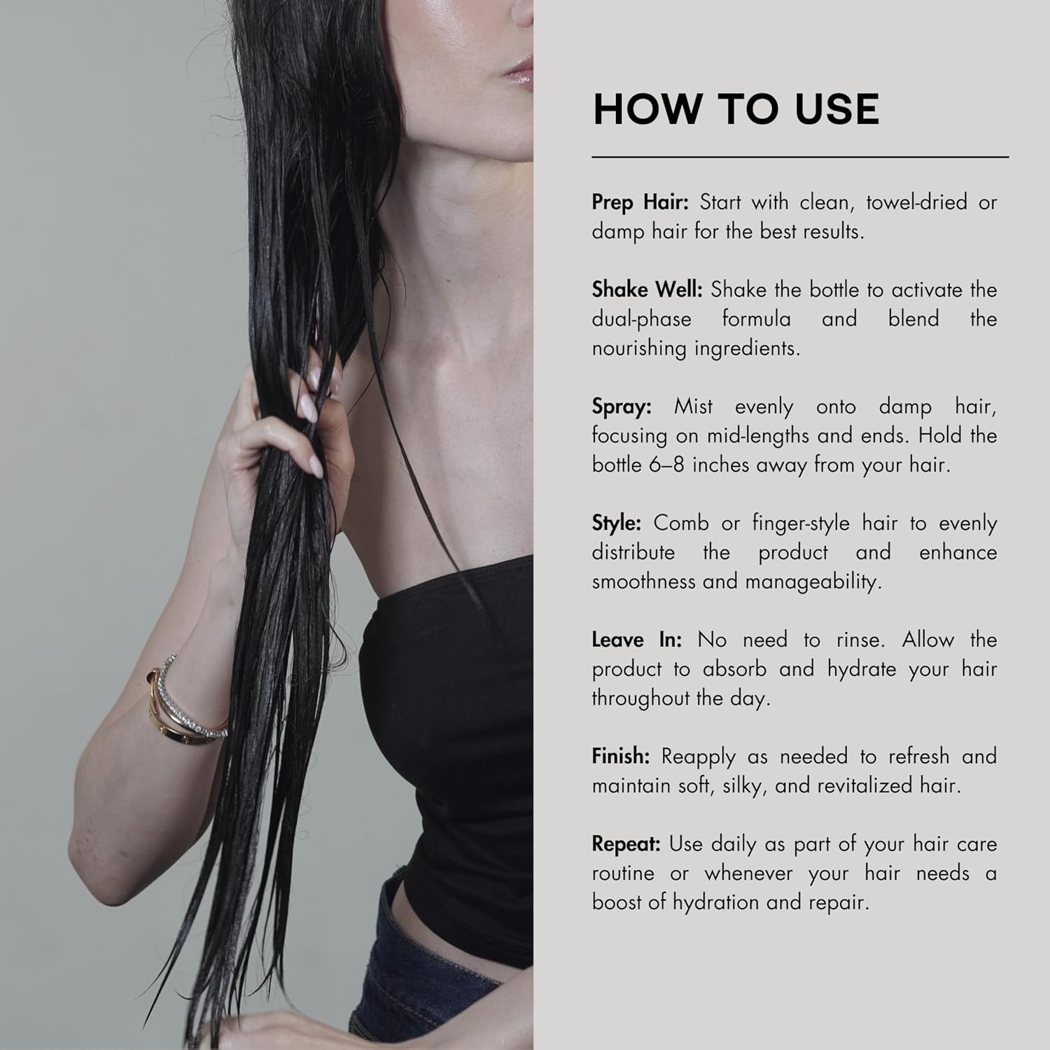 - Biphasic Repair And Moisture: This leave-in conditioner spray, suitable for all hair types, including sensitive skin, repairs split ends and improves texture. This hair detangler spray leaves hair softer and refreshed for effortless styling, eliminating the need to rinse