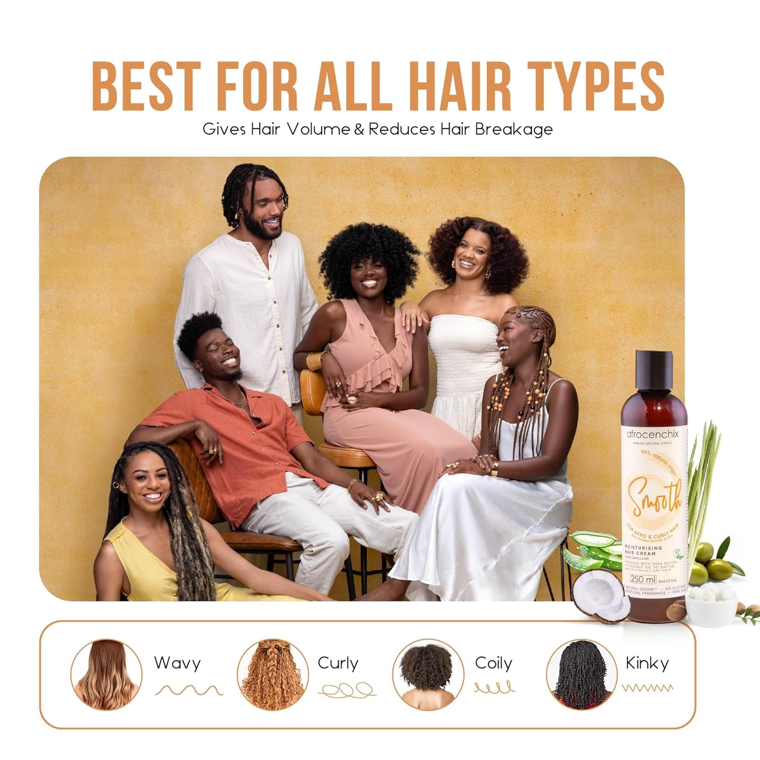 - Deep Moisture for Afro & Curly Hair Smooth hydrates dry strands and softens coils, kinks, and curls with rich natural ingredients—perfect for daily moisture without buildup.