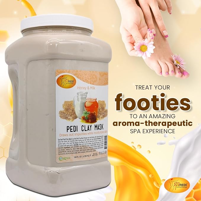 SPA REDI - Clay Mask, Milk and Honey, 128 Oz - Pedicure and Body Deep Cleansing, Skin Pore Purifying, Detoxifying and Hydrating