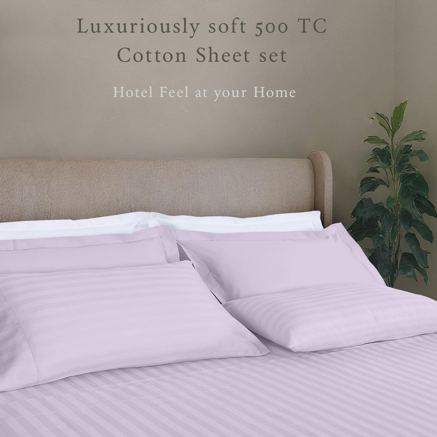 Threadmill 500 Thread Count King Size Damask Stripe, 4 Pc Luxury Cotton Bed Sheet Set, Silky Soft & Breathable Lilac Sheets with 16" Elasticized Deep Pocket, 2 Pillowcases & Free Tote Bag
