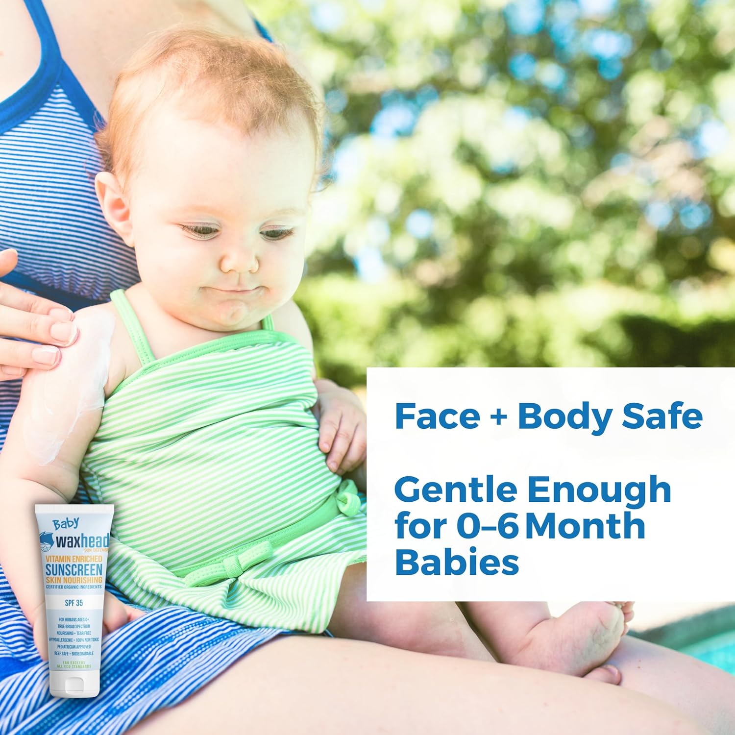 Waxhead Baby Sunscreen SPF 35 – Non-nano Zinc Oxide Mineral Lotion for 6-12 months Babies + 12-24 Toddlers | Natural Tear‑Free + Organic Hypoallergenic, Pediatrician‑Recommended Sunblock (4 oz)