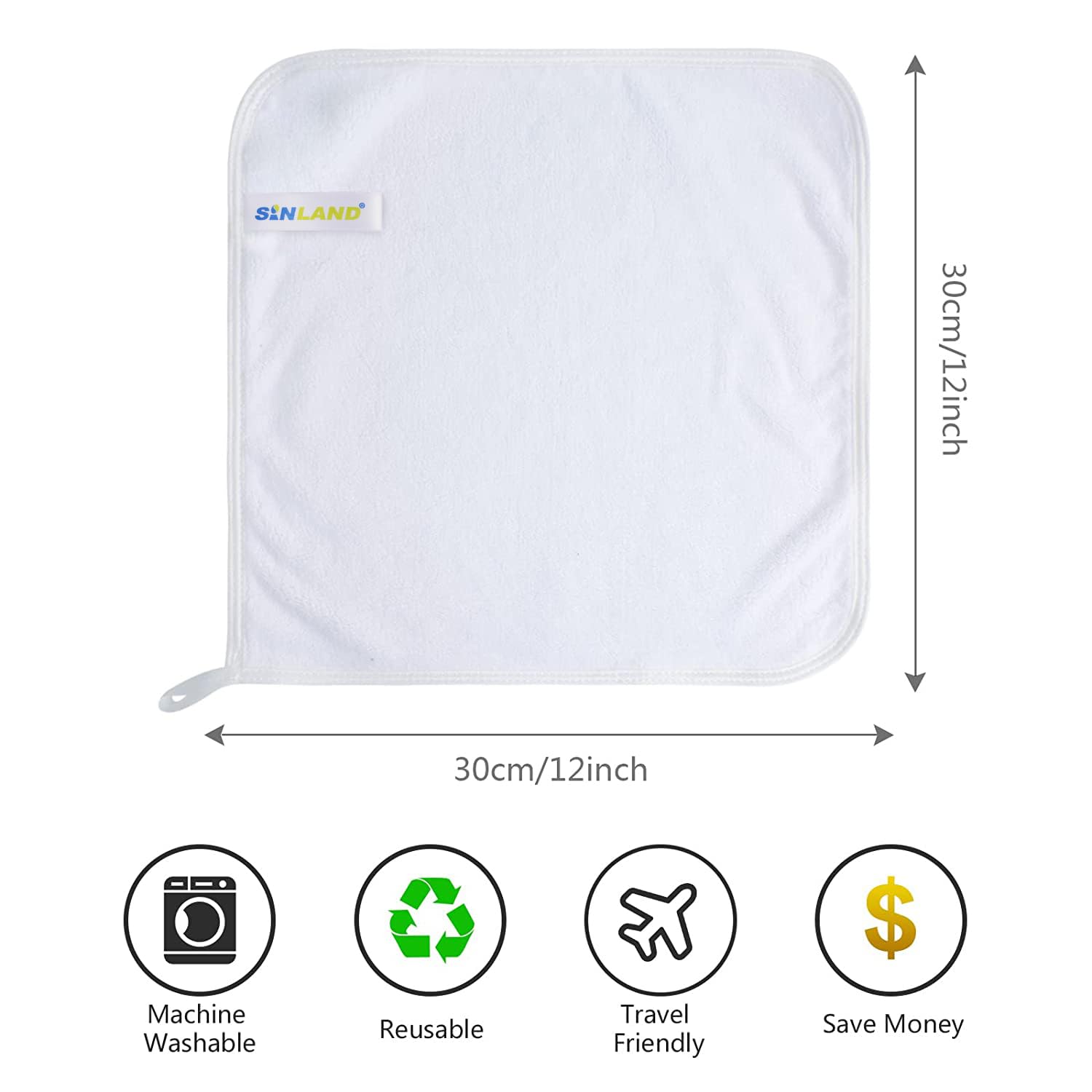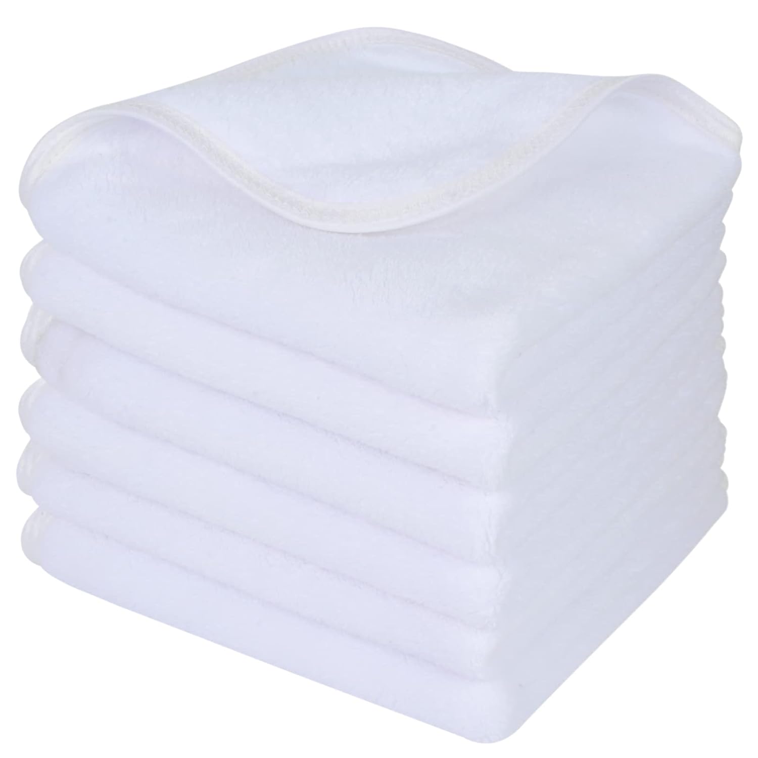 SINLAND Microfiber Face Cloths Reusable Makeup Remover Washcloths Super Soft and Absorbent Fingertip Face Towels for Sensitive Skin Women 12 x 12 Inch 6 Pack White