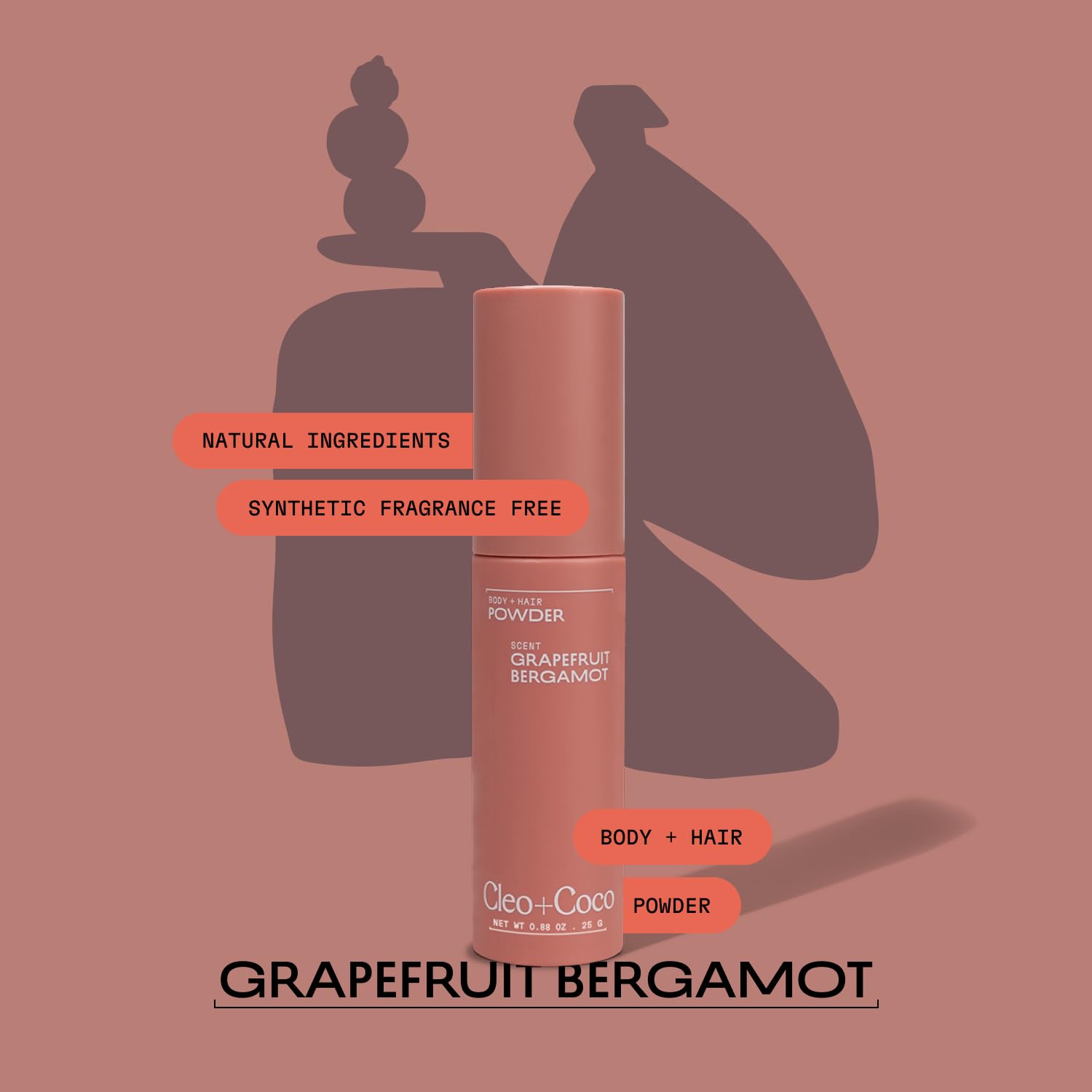 Cleo + Coco. Deodorant Powder for Body and Hair, Grapefruit Bergamot (0.88 oz), 2-in-1 Deo Powder & Dry Shampoo for Women & Men, Aluminum Free Deodorant, Talc-Free, Anti Chafe Protector, Travel-Size