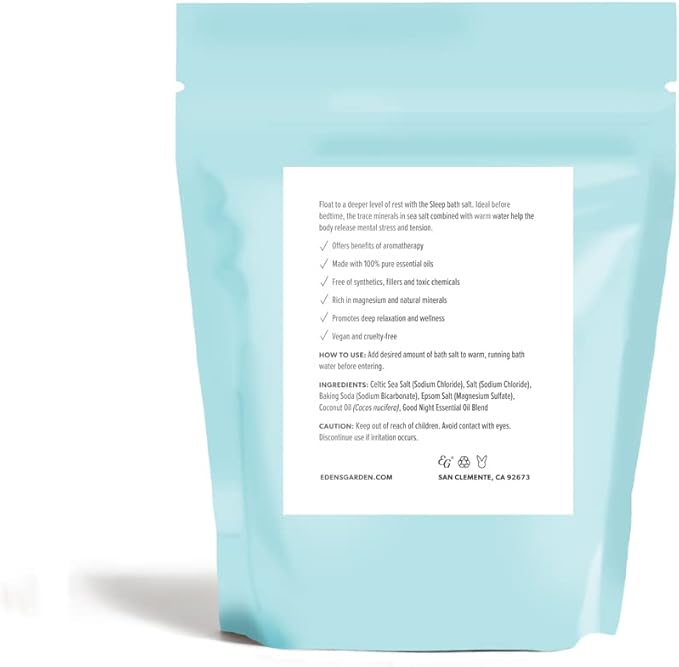 - VERSATILE & EASY TO USE- Discover Edens Garden Natural Bath Salts. Perfect for creating a luxurious spa-like bath experience, soothing tired muscles, or detoxifying your body. Simply add a handful to your bath, soak, and relax. Enriched with Epsom salt and Dead Sea salt, combined with 100% pure essential oils, our bath salts are a versatile addition to your self-care routine. Enjoy the ultimate relaxation with these skin-nourishing bath salts.
