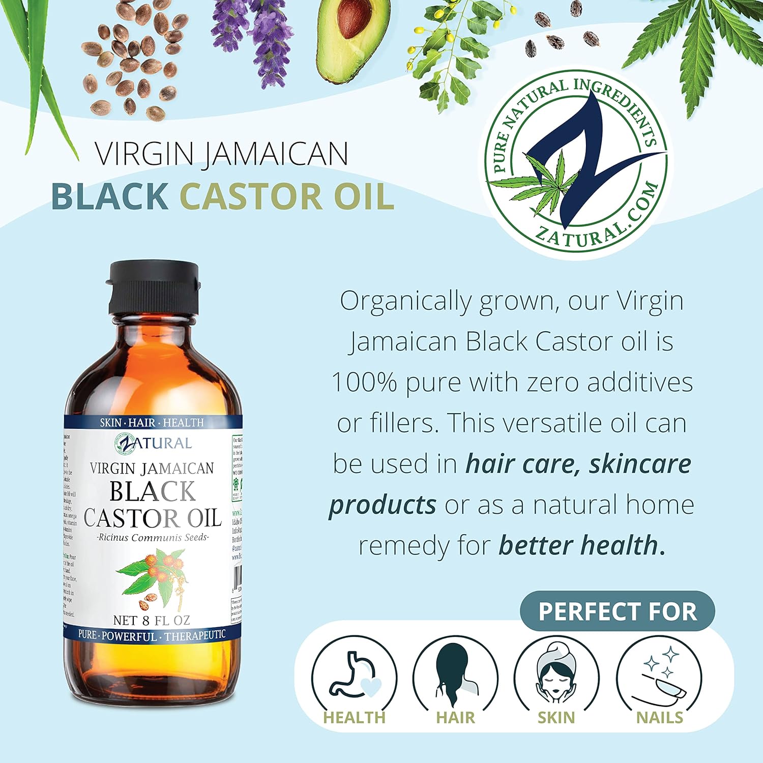 - BLACK CASTOR OIL FROM ZATURAL: Our oil is 100% pure Jamaican, known to be the highest quality black castor oil on the market. Black castor oil has an extensive list of benefits when applied to hair, skin, and nails.