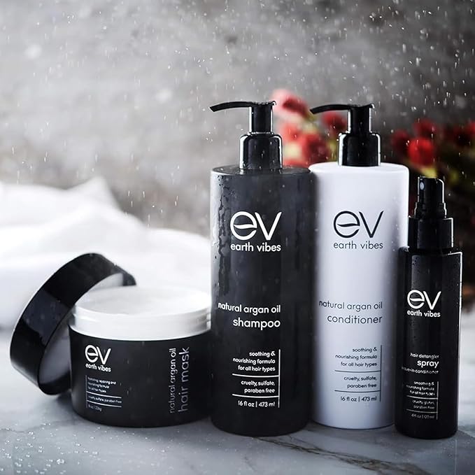 Earth Vibes Hydrating Argan Oil Hair Mask Conditioner - Deep Conditioning & Moisturizing - Hair Treatment For Dry Damaged Hair - Sulfate Free - Organic Jojoba Oil, Coconut Oil (8 Oz/226g)