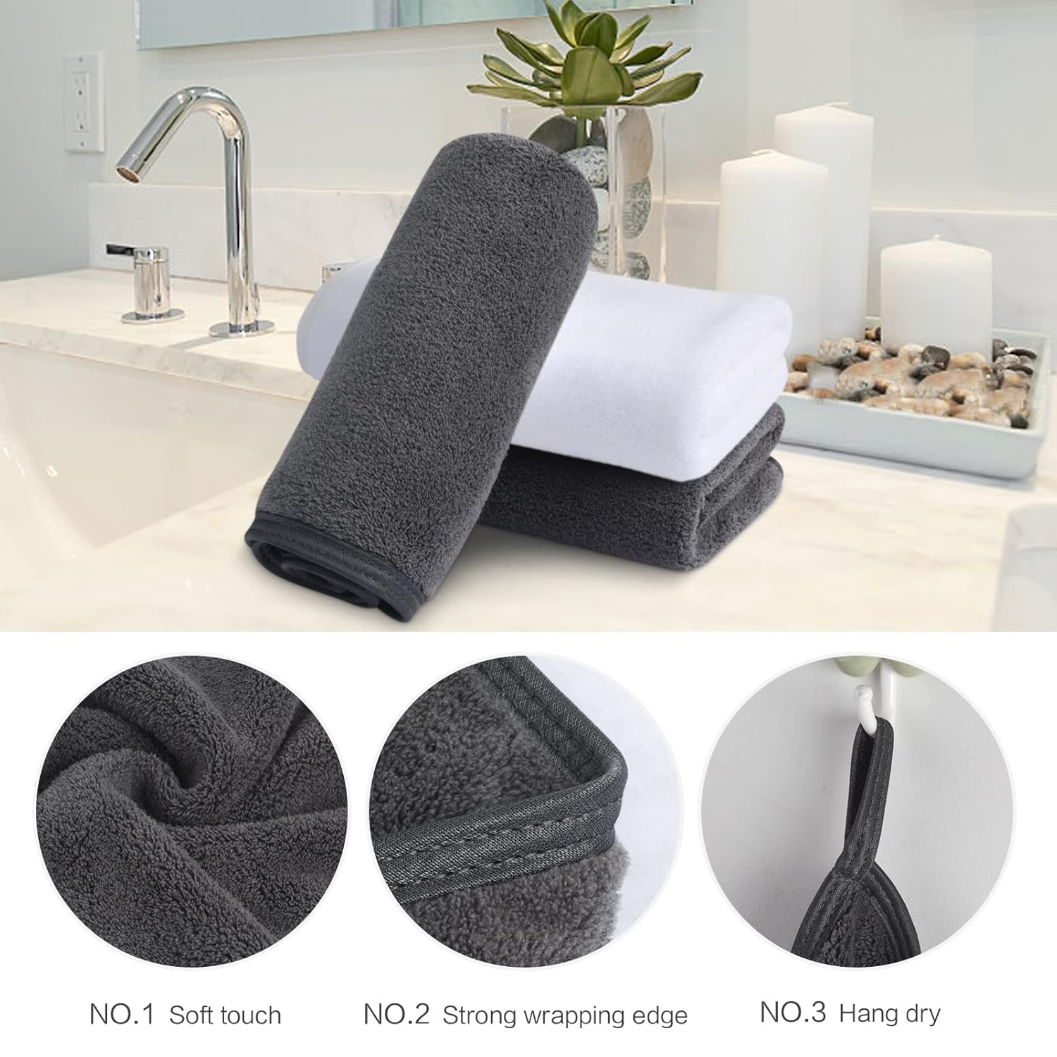 SINLAND Microfiber Face Cloths Reusable Makeup Remover Washcloths Super Soft and Absorbent Fingertip Face Towels for Sensitive Skin Women 12 x 12 Inch 6 Pack White and Grey