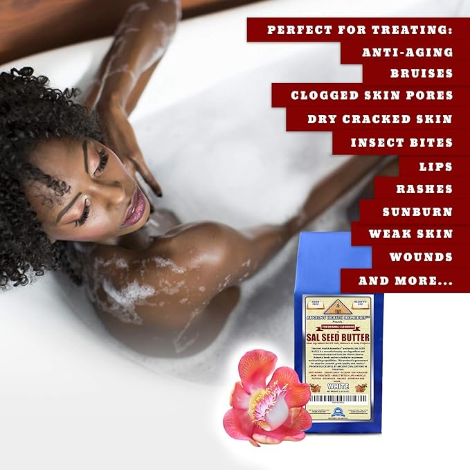 - *BUYING AN ANCIENT HEALTH REMEDIES AUTHENTIC SAL SEED (SHOREA ROBUSTA) BUTTER 1 LB BLOCK is a healthy and affordable alternative to raw Body Butters used in treating Acne, Anti Aging, Dry, Itchy Skin, Chapped Lips, Frostbite, Psoriasis, Rashes, Stretch Marks, Sunburn and more. FREE 8 X 8 QUALITY 2 ML ZIP LOCK STORAGE BAG INCLUDED WITH EACH PURCHASE.