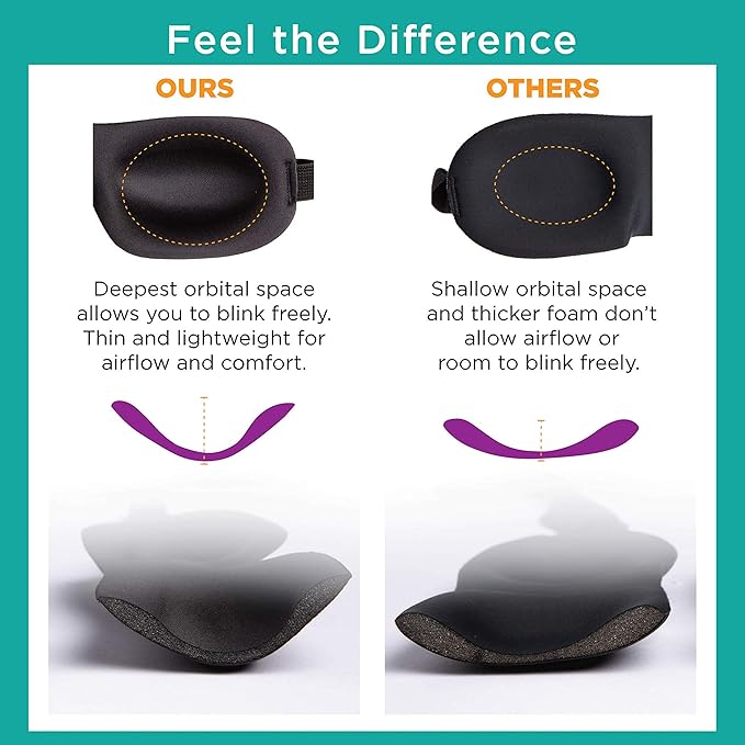 - ULTRA LIGHT WEIGHT: Our contoured eye mask is 3.5" tall by 9.5" wide, perfect for men, women and children