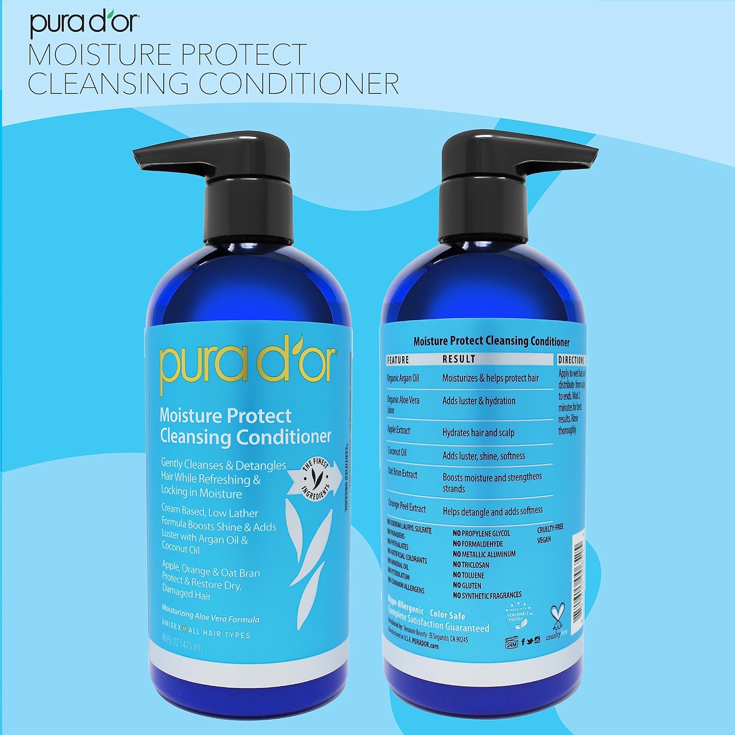 PURA D’OR Moisture Protect Cleansing Conditioner (16oz) Detangles & Restores Hair with Argan Oil, Lavender, No Sulfate, All Hair Types, Men & Women (Packaging may vary)