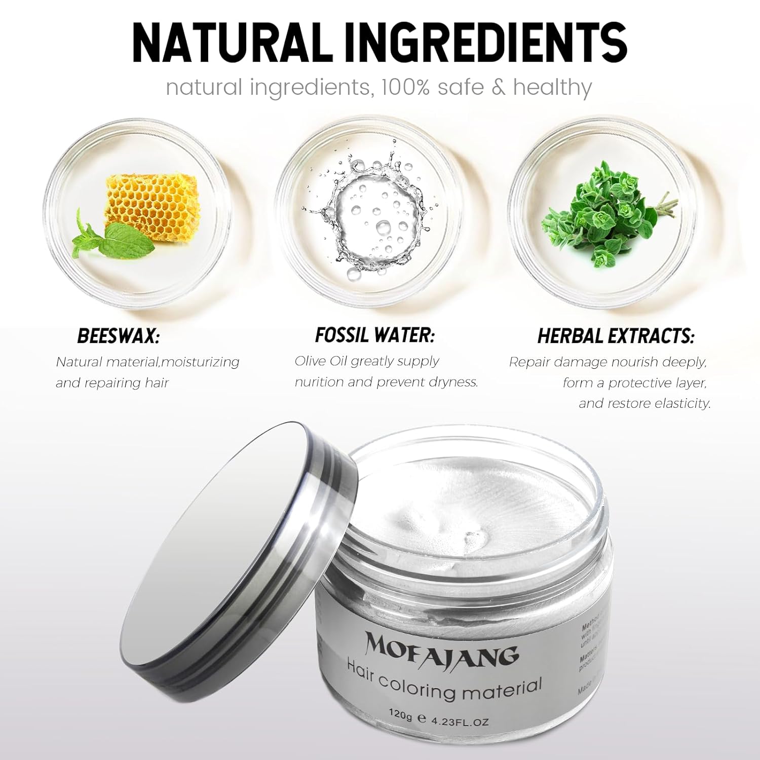 Silver Grey Hair Wax Pomades 4.23 oz - Natural Hair Coloring Wax Material Disposable Hair Styling Clays Ash for Cosplay, Party (Silver Grey)