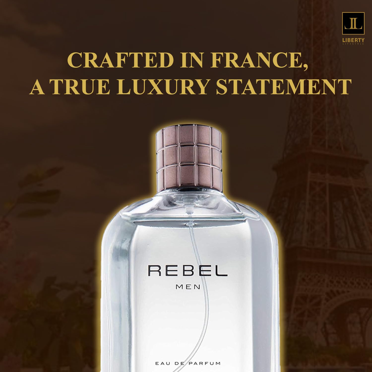 Liberty Luxury Rebel Perfume for Men 100ml, Powerful Long Lasting Eau De Parfum with Spicy Woody Notes Masculine Fragrance for the Modern Rule Breaker, men cologne, Gift For Men,100ml