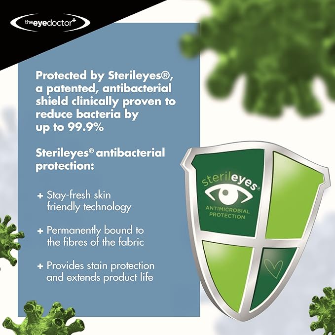 - STERILEYES PROTECTED EYE MASK: Sterileyes is a patented solution that is bound to the fibres of the fabric to protect eyes, helping you to maintain eye health. Can also be used cold to help relieve the symptoms of Hayfever & Allergies.