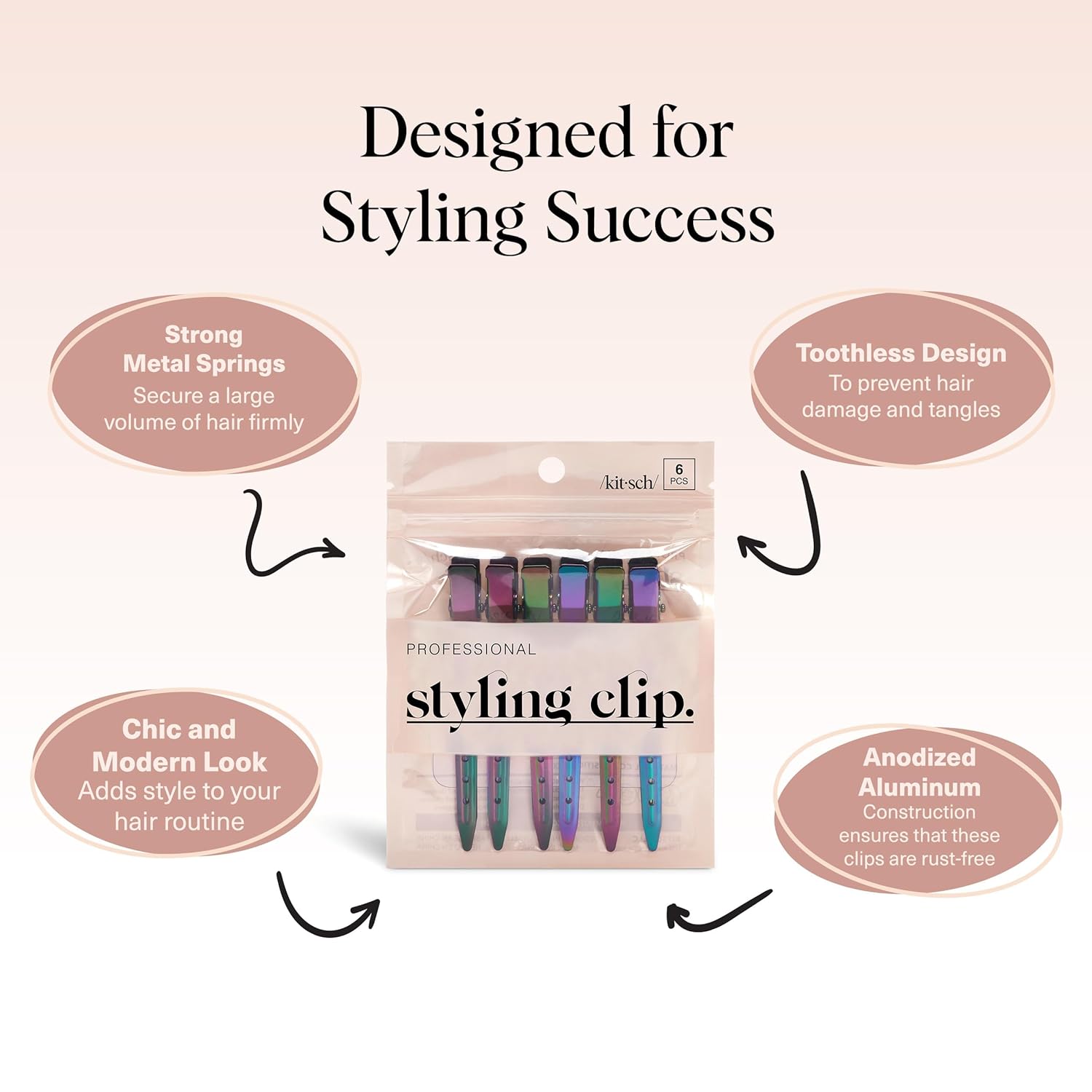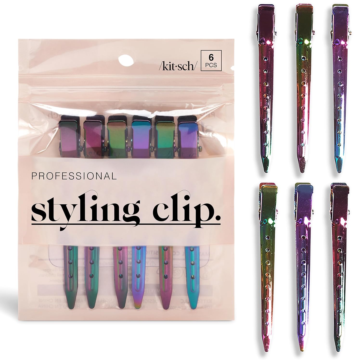 Kitsch Professional Alligator Clips for Hair Styling – 3.5" Aluminum Hair Sectioning Clips for Salon & Makeup Application | Lightweight for Stylists | Ideal Gifts for Women – Iridescent, 6 Pcs