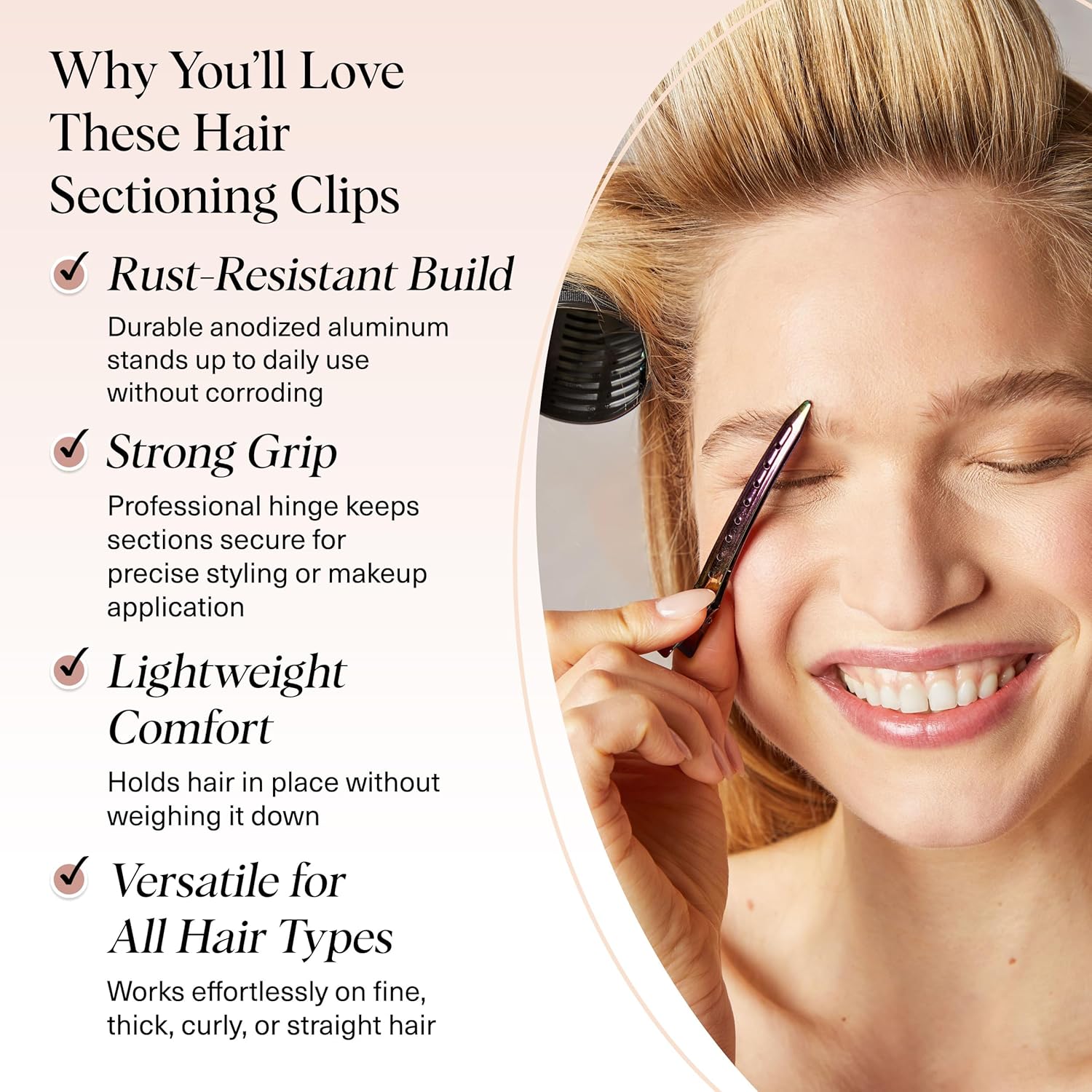 - MULTI-USE FOR STYLING & MAKEUP: From salon chairs to vanities, these sectioning hair clips are perfect for haircuts, styling, coloring, or holding hair back while applying makeup. Use them as makeup hair clips, duck clips, or all-purpose styling clips for precise, fuss-free beauty routines.