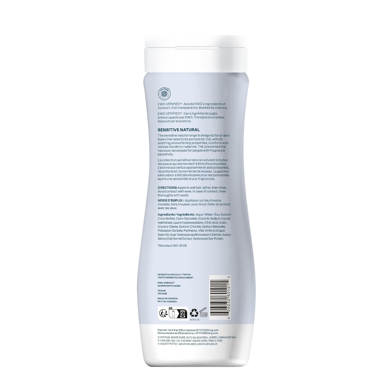 ATTITUDE Hair Shampoo for Sensitive Dry Scalp, EWG Verified, Soothing Oat, For Thin Hair, Naturally Derived Ingredients, Vegan and Plant-Based, Volume and Shine, Unscented, 16 Fl Oz