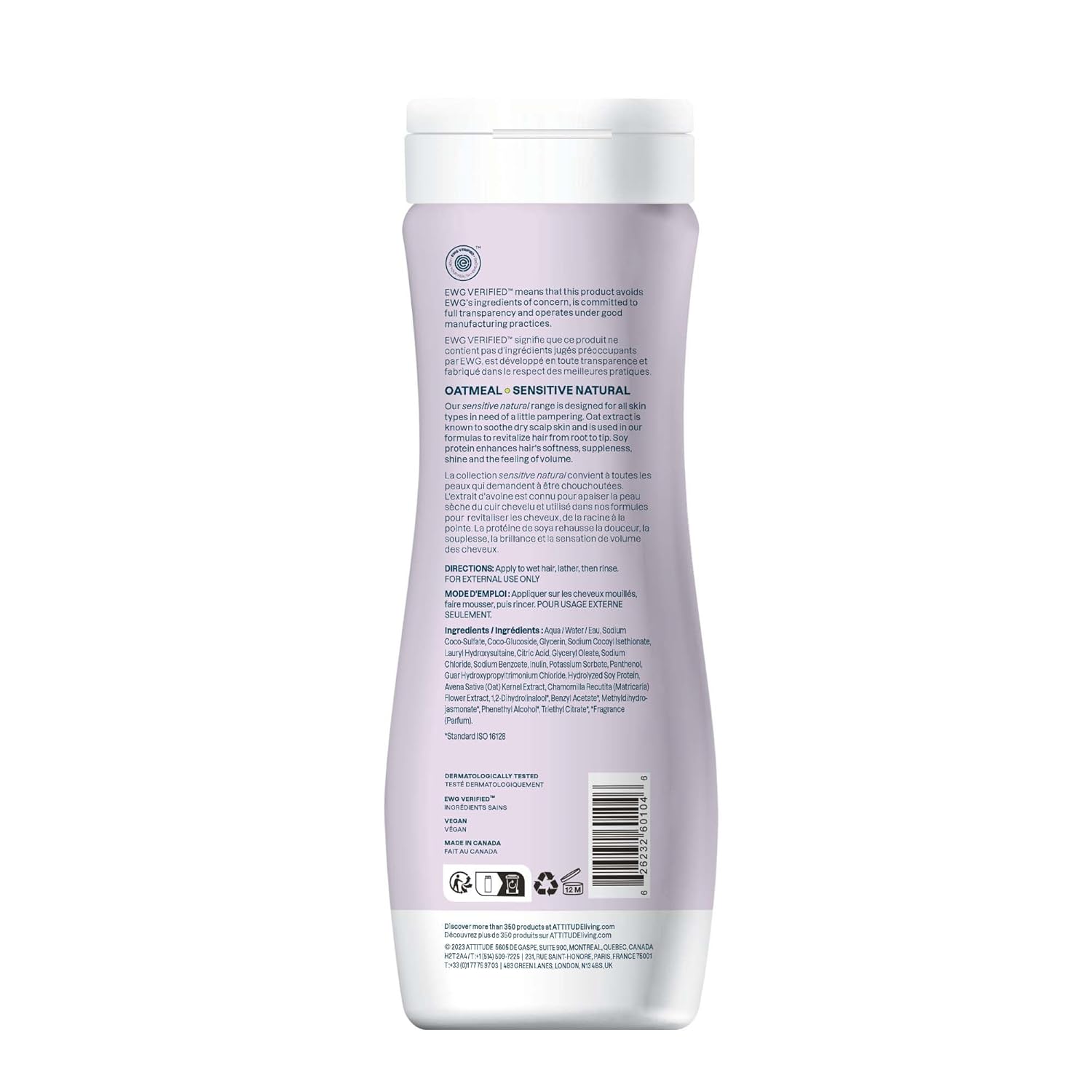 ATTITUDE Hair Shampoo for Sensitive Dry Scalp, EWG Verified, Soothing Oat, For Thin Hair, Naturally Derived Ingredients, Vegan and Plant-Based, Volume and Shine, Chamomile, 16 Fl Oz
