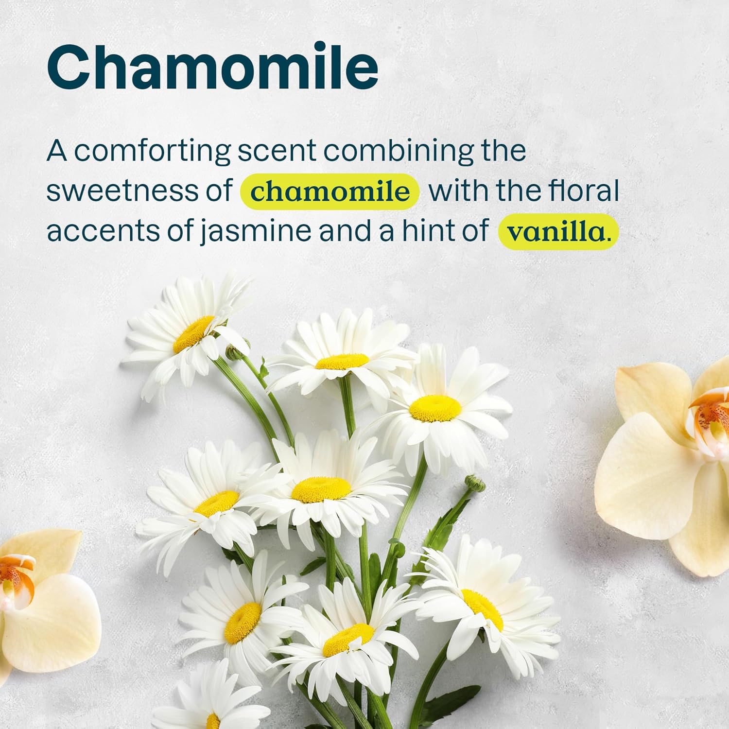 - CHAMOMILE: This shampoo for women and men has a delicate, soothing scent where gentle chamomile meets floral jasmine and creamy vanilla for a peaceful, calming experience.
