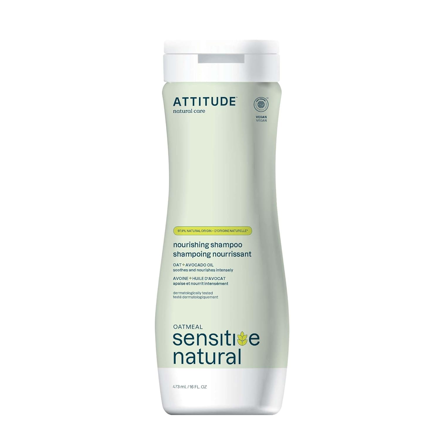 ATTITUDE Hair Shampoo for Sensitive Dry Scalp, EWG Verified, Soothing Oat, Dry and Damaged Hair, Naturally Derived Ingredients, Vegan and Plant-Based, Nourishing, Avocado Oil, 16 Fl Oz
