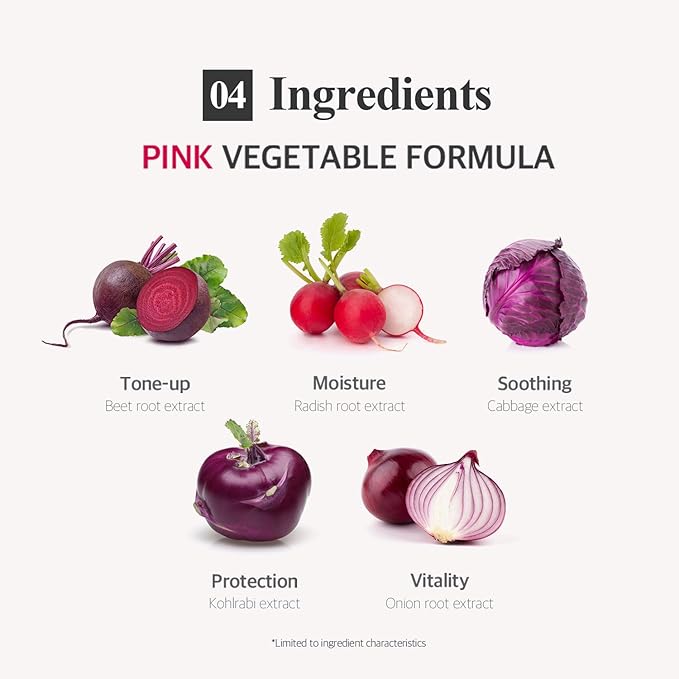 - Pink Vegetable Energy : This pink-hued essence is enriched with Beet Root Extract, Radish Root Extract, and Kohlrabi Extract to deeply nourish and hydrate the skin, promoting a youthful and radiant complexion.